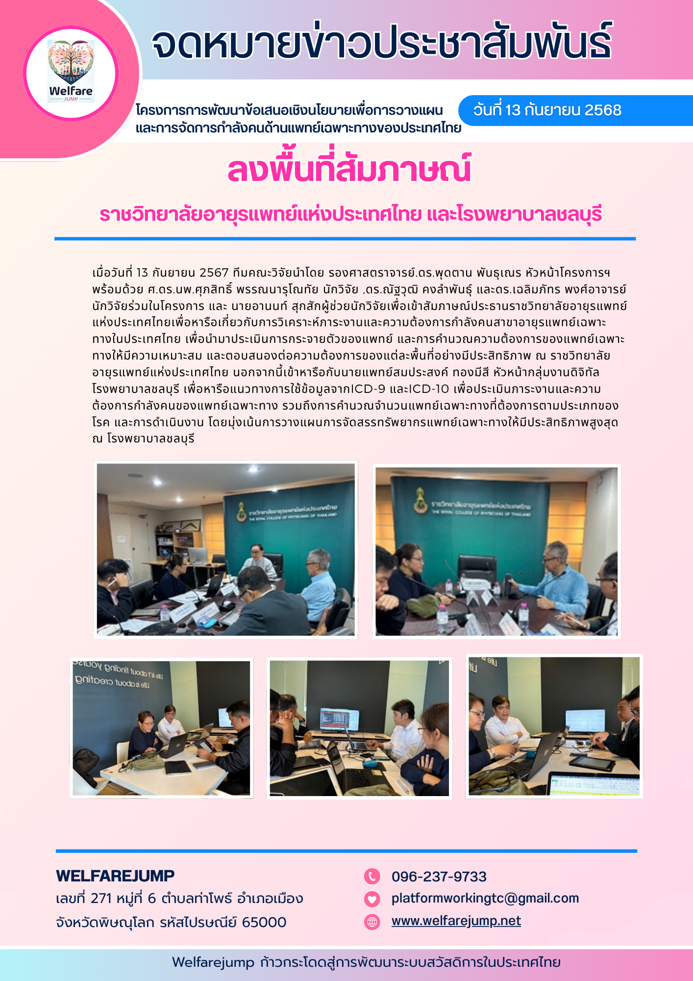 ระบบสวัสดิการเป็นหัวใจสำคัญในการสร้างสังคมที่มีความเป็นธรรมและยั่งยืน แม้ว่าประเทศไทยจะมีระบบสวัสดิการพื้นฐานแต่ยังคงมีช่องว่างในหลายด้าน ทั้งในเรื่องของ ความครอบคลุมของสวัสดิการทุกช่วงวัย การเข้าถึงบริการสวัสดิการอย่างเท่าเทียม และประสิทธิภาพในการให้บริการ ซึ่งยังสามารถพัฒนาได้อีกมากโดยเฉพาะการนำเทคโนโลยีเข้ามาเพิ่มประสิทธิภาพ ที่ Welfarejump เราเล็งเห็นถึงความสำคัญในการพัฒนาระบบสวัสดิการของประเทศไทยให้ทันสมัยและมีประสิทธิภาพมากขึ้น เรามุ่งมั่นในการศึกษาและรวบรวมข้อมูลเชิงลึก เพื่อนำเสนอแนวทางในการปรับปรุงสวัสดิการ โดยการใช้ เทคโนโลยีสารสนเทศ (IT) และ ปัญญาประดิษฐ์ (AI) เพื่อช่วยในการจัดเก็บและวิเคราะห์ข้อมูล ซึ่งจะทำให้การช่วยเหลือและการประเมินความต้องการของประชาชนมีความแม่นยำและทันสมัยมากขึ้น เราเชื่อว่าการนำเทคโนโลยีมาใช้จะช่วยยกระดับคุณภาพชีวิตและพัฒนาระบบสวัสดิการไทยให้ก้าวสู่มาตรฐานสากล