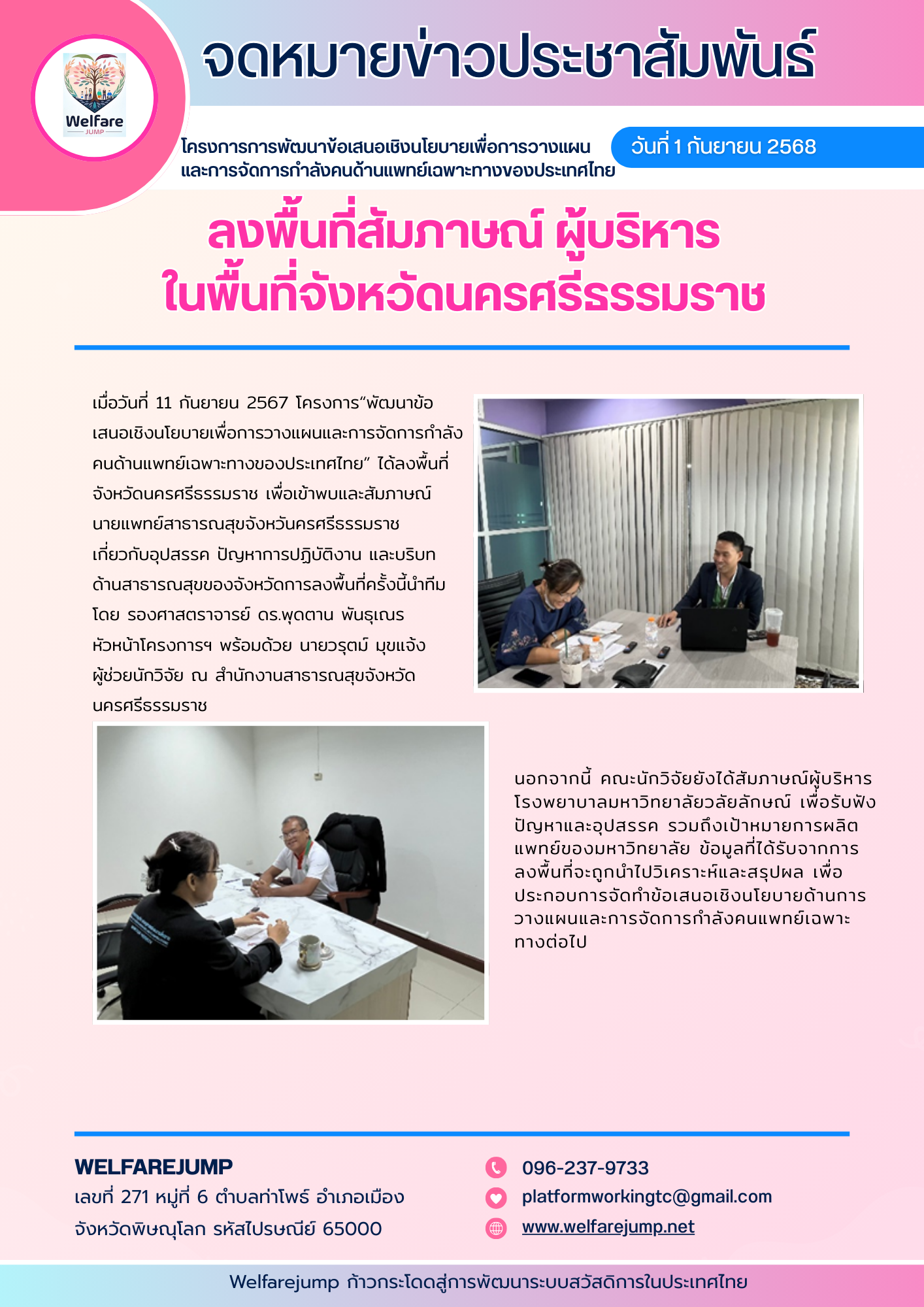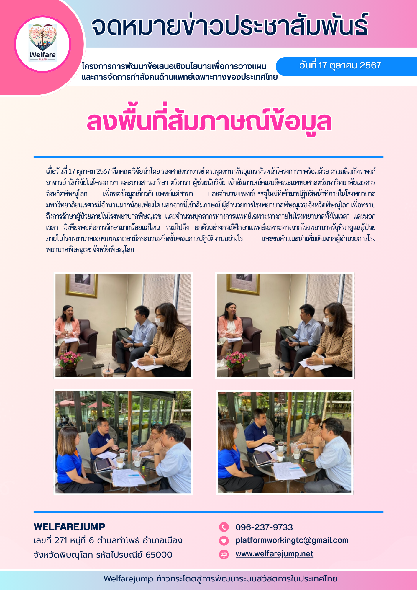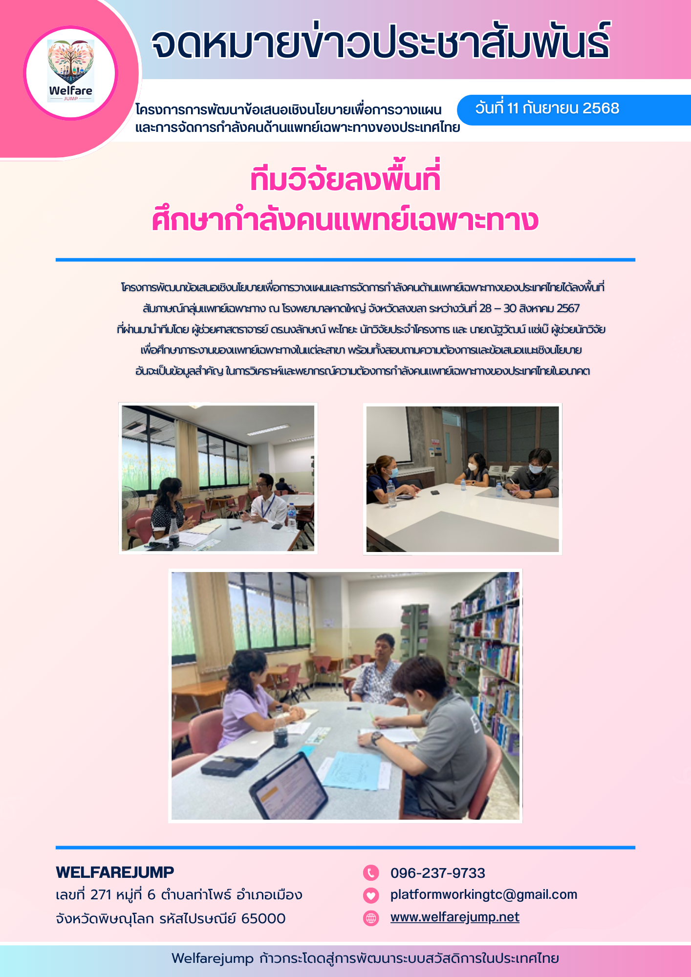ระบบสวัสดิการเป็นหัวใจสำคัญในการสร้างสังคมที่มีความเป็นธรรมและยั่งยืน แม้ว่าประเทศไทยจะมีระบบสวัสดิการพื้นฐานแต่ยังคงมีช่องว่างในหลายด้าน ทั้งในเรื่องของ ความครอบคลุมของสวัสดิการทุกช่วงวัย การเข้าถึงบริการสวัสดิการอย่างเท่าเทียม และประสิทธิภาพในการให้บริการ ซึ่งยังสามารถพัฒนาได้อีกมากโดยเฉพาะการนำเทคโนโลยีเข้ามาเพิ่มประสิทธิภาพ ที่ Welfarejump เราเล็งเห็นถึงความสำคัญในการพัฒนาระบบสวัสดิการของประเทศไทยให้ทันสมัยและมีประสิทธิภาพมากขึ้น เรามุ่งมั่นในการศึกษาและรวบรวมข้อมูลเชิงลึก เพื่อนำเสนอแนวทางในการปรับปรุงสวัสดิการ โดยการใช้ เทคโนโลยีสารสนเทศ (IT) และ ปัญญาประดิษฐ์ (AI) เพื่อช่วยในการจัดเก็บและวิเคราะห์ข้อมูล ซึ่งจะทำให้การช่วยเหลือและการประเมินความต้องการของประชาชนมีความแม่นยำและทันสมัยมากขึ้น เราเชื่อว่าการนำเทคโนโลยีมาใช้จะช่วยยกระดับคุณภาพชีวิตและพัฒนาระบบสวัสดิการไทยให้ก้าวสู่มาตรฐานสากล