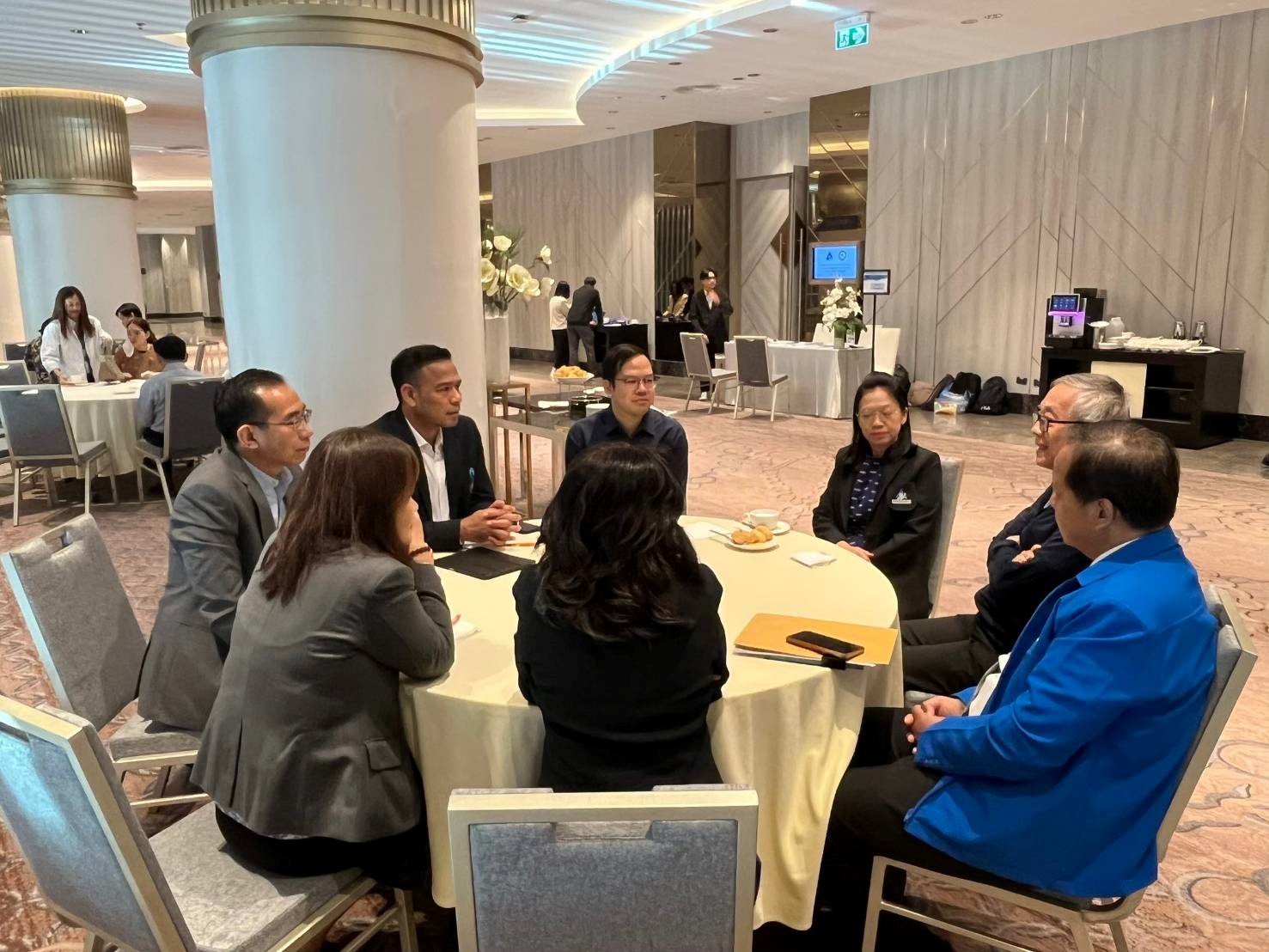 คณะนักวิจัยโครงการ “การพัฒนาข้อเสนอเชิงนโยบายเพื่อการวางแผนและการจัดการกำลังคนด้านแพทย์เฉพาะทางของประเทศไทย” ได้เข้าพบที่ปรึกษาโครงการทั้งในประเทศและต่างประเทศ เพื่อรายงานความก้าวหน้าของการดำเนินงาน และหารือแนวทางการพัฒนาข้อเสนอเชิงนโยบายที่สอดคล้องกับบริบทของระบบบริการสุขภาพไทยในปัจจุบันและอนาคต ภายในการหารือมีการแลกเปลี่ยนข้อคิดเห็นเชิงวิชาการ ข้อเสนอแนะด้านกลยุทธ์ และการนำเสนอข้อมูลวิเคราะห์เชิงระบบที่เกี่ยวข้องกับโครงสร้างและแนวโน้มของกำลังคนด้านการแพทย์เฉพาะทาง พร้อมทั้งหารือร่วมกับผู้เชี่ยวชาญจากต่างประเทศเพื่อประเมินแนวทางที่อาจปรับใช้ได้ในบริบทของประเทศไทย กิจกรรมครั้งนี้นับเป็นก้าวสำคัญในการขับเคลื่อนข้อเสนอเชิงนโยบายไปสู่การปฏิบัติที่เป็นรูปธรรม ด้วยความร่วมมือจากภาคส่วนต่าง ๆ ทั้งภาครัฐ นักวิชาการ และเครือข่ายผู้เชี่ยวชาญ