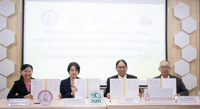 วันที่ 20 พฤษภาคม 2568 กองทุนเพื่อความเสมอภาคทางการศึกษา (กสศ.) ร่วมกับมูลนิธิศูนย์วิจัยและติดตามความเป็นธรรมทางสุขภาพ สำนักงานพัฒนาสังคมและความมั่นคงของมนุษย์จังหวัดพิษณุโลก และสำนักงานอัยการภาค 6 ได้ลงนามบันทึกความเข้าใจความร่วมมือ (MOU) เพื่อพัฒนาระบบหลักประกันโอกาสทางการศึกษาและสังคม รวมถึงระบบสารสนเทศเพื่อการจัดการรายกรณี (CMIS) ภายใต้โครงการ พัฒนาระบบสร้างเสริมโอกาสให้เด็กและเยาวชนมีความเสมอภาคทางการศึกษาและสังคม (ระยะที่ 3) ความร่วมมือครั้งนี้มีเป้าหมายสำคัญในการเชื่อมโยงฐานข้อมูลและกลไกการทำงานระหว่างหน่วยงาน เพื่อให้ประชาชน โดยเฉพาะเด็ก เยาวชน และครอบครัวกลุ่มเปราะบางและด้อยโอกาส เข้าถึงสิทธิ สวัสดิการ การช่วยเหลือ และการคุ้มครองทางสังคมที่เหมาะสม พร้อมทั้งมุ่งเน้นการพัฒนาพื้นที่นำร่อง การวิจัยและสร้างนวัตกรรม ตลอดจนการสื่อสารสาธารณะและจัดทำข้อเสนอนโยบายเชิงประจักษ์ เพื่อขับเคลื่อนการลดความเหลื่อมล้ำทางการศึกษาและสังคมอย่างยั่งยืน
