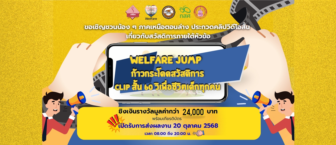 ✨ เปิดโอกาสให้เยาวชนภาคเหนือตอนล่าง สะท้อนมุมมองเรื่อง “สวัสดิการ” ผ่านคลิปสั้น 60 วินาที ✨ 🏆 รางวัล รวมมูลค่ากว่า 24,000 บาท พร้อมเกียรติบัตร🏆